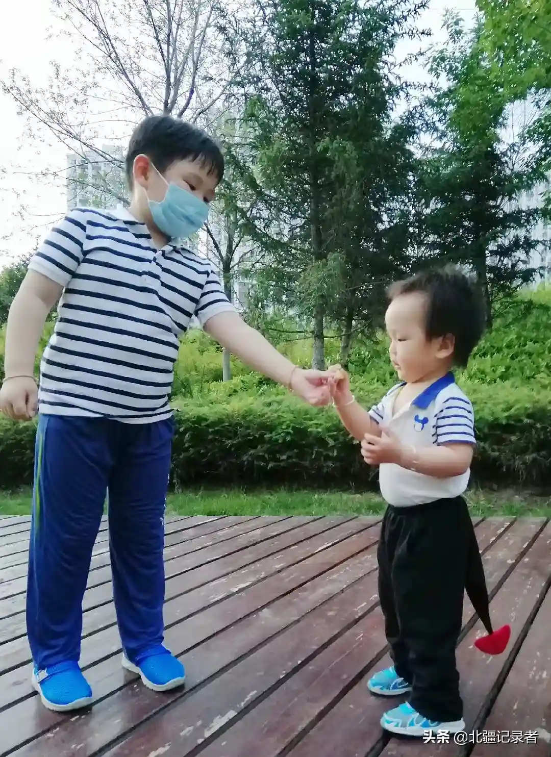 在医生的强烈建议下,六六妈妈生下了小儿子小翊宸,她说这个孩子是专门为救哥哥而来的,肩负着特殊的人生使命。父母特意留下了小儿子的脐带血造血干细胞和胎盘干细胞组合,以防六六白血病复发时使用。不幸的是,这一次真的要用弟弟的骨髓为六六进行骨髓造血干细胞移植了。图为首次移植康复后,六六和弟弟在一起玩耍。